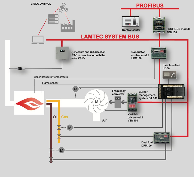 Brülör control ünitesi ve modüller arasındaki iletişim LAMTEC SİSTEM BUS (LSB) üzerinden gerçekleşir.