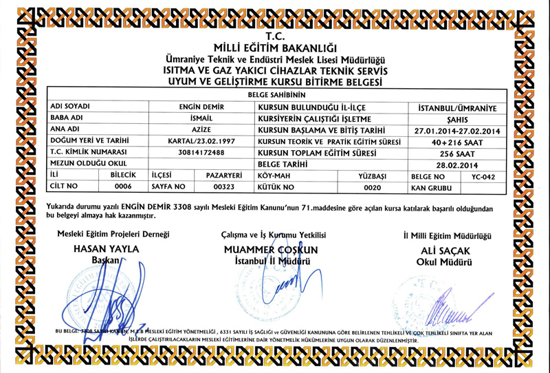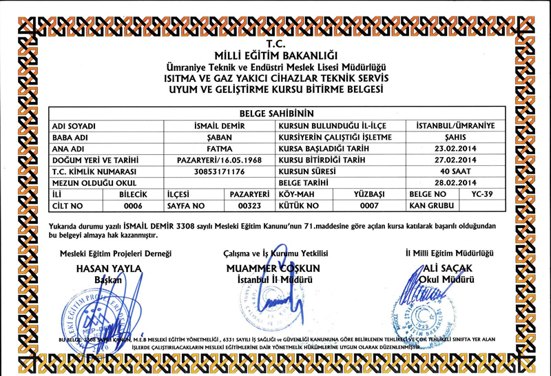 Eğitim ve Mesleki Yeterlilik Belgelerimiz